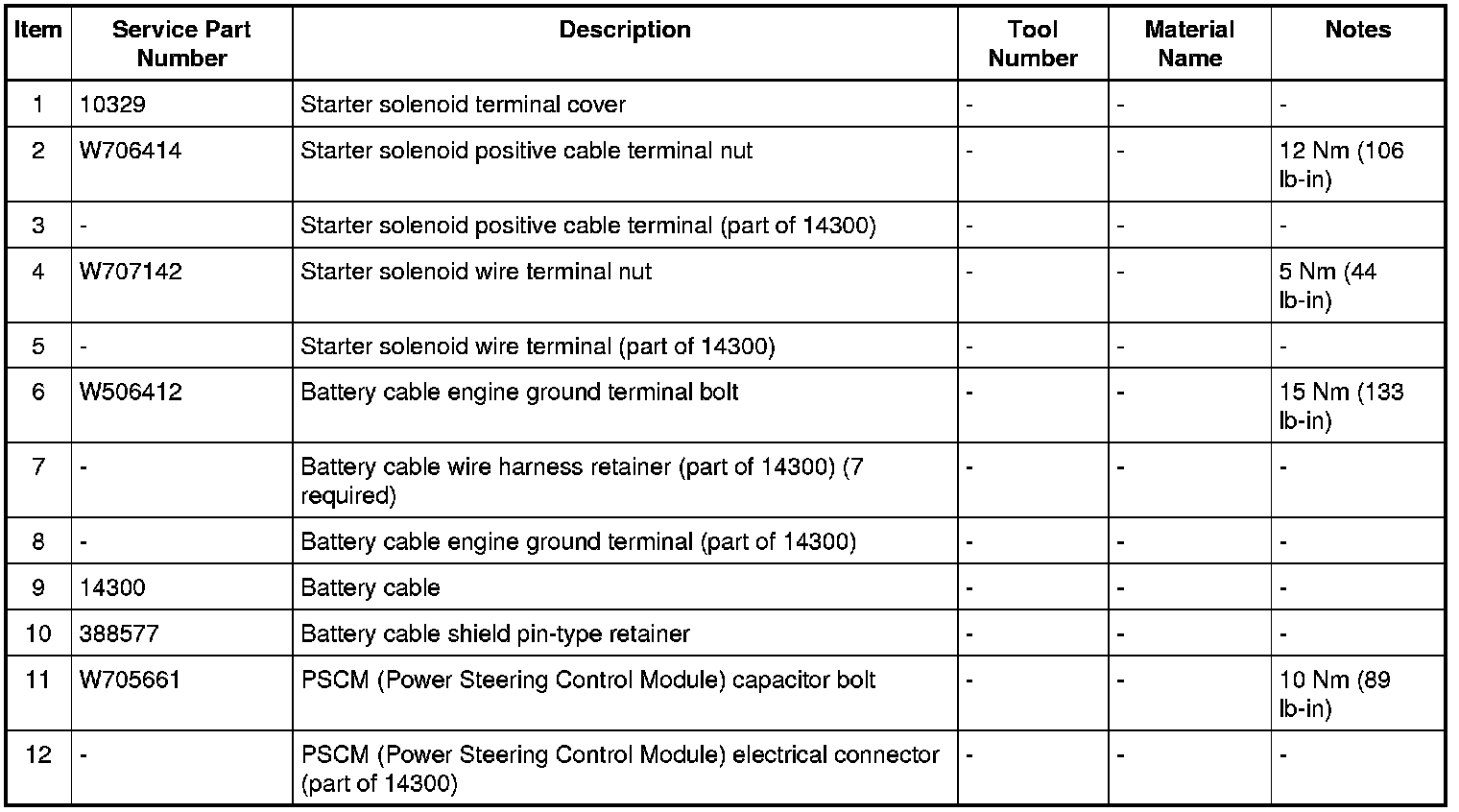 Battery Cable Connections to Starter and PSCM (Power Steering Control Module)