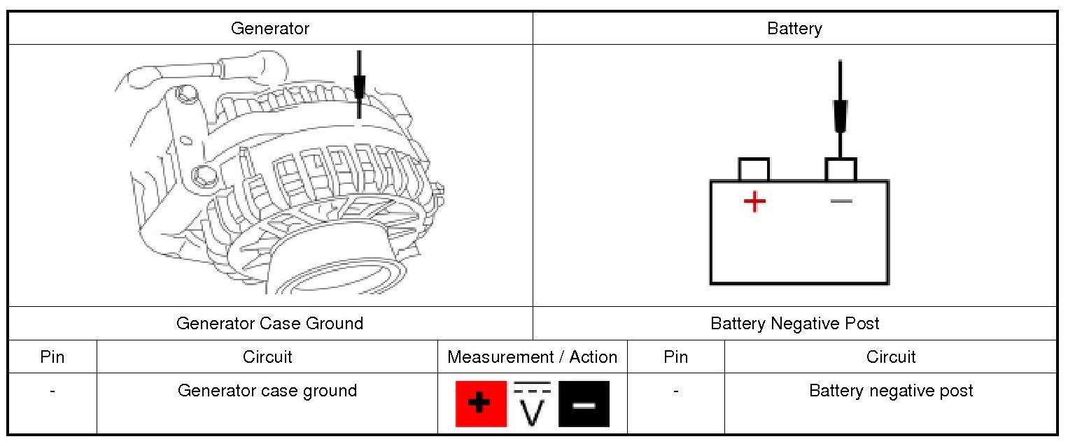 1. With the engine still running at idle, measure and record the battery voltage at the battery.