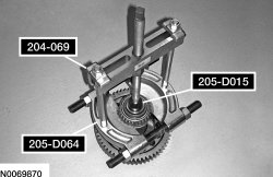 2. Using 205-D019 (D80L-630-8) , 205-D064 (D84L-1123-A) and 204-069 (T81P-1104-C) , remove the right differential carrier bearing from the differential assembly.