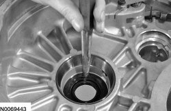 6. Using a suitable tool, remove the halfshaft seal from the transaxle case.
