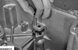12. Using a magnet, remove the park pawl abutment pins and the abutment.