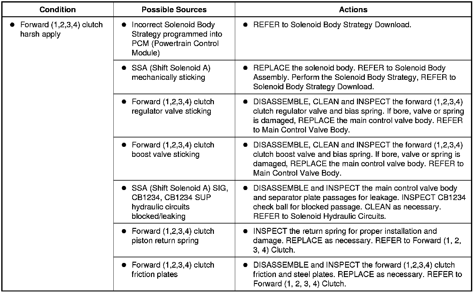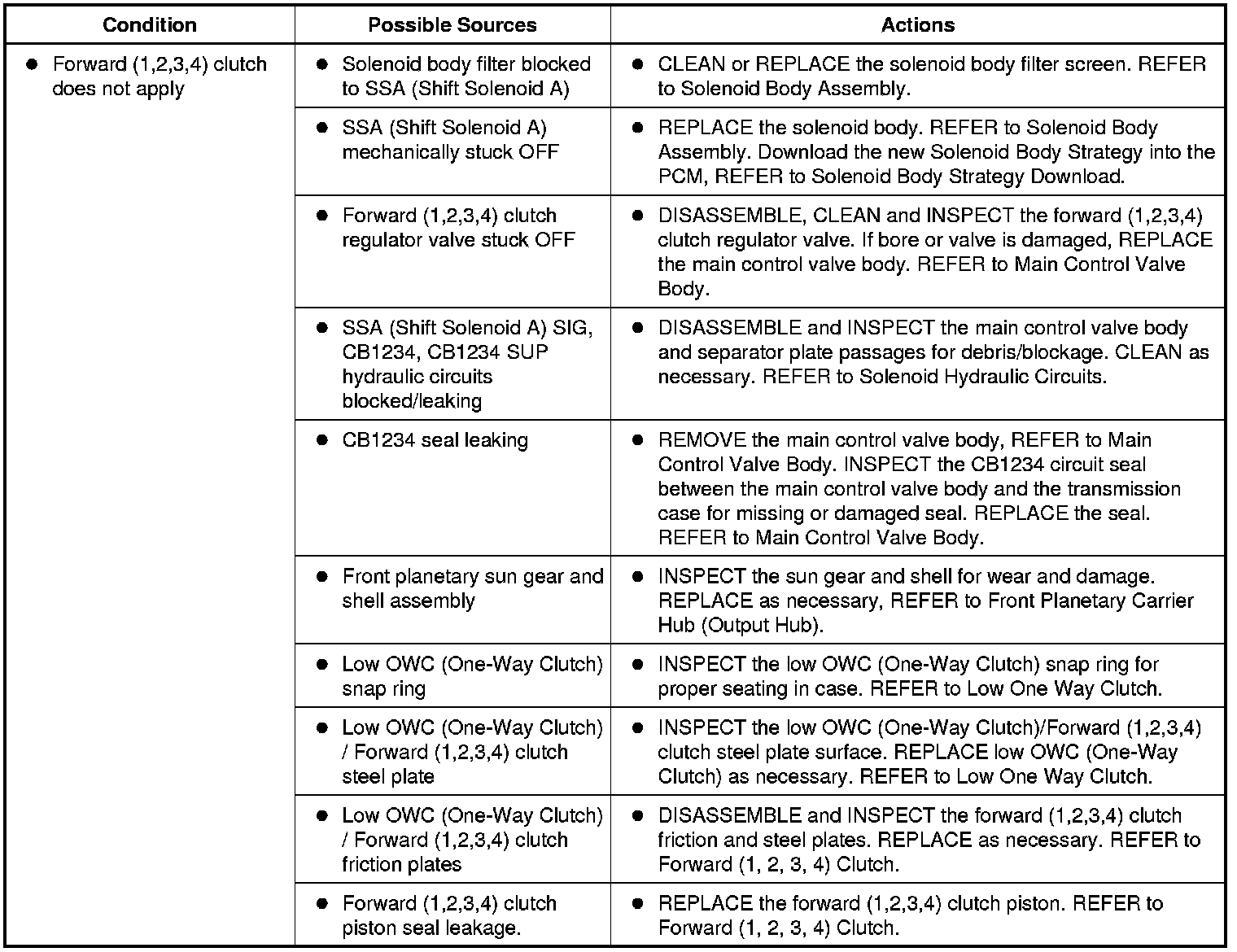 1. For forward (1,2,3,4) clutch operation, REFER to Forward Clutch Hydraulic Circuits Hydraulic System - 6F50 and 6F55 or REFER to Forward (1, 2, 3, 4) Clutch Mechanical System - 6F50 and 6F55.