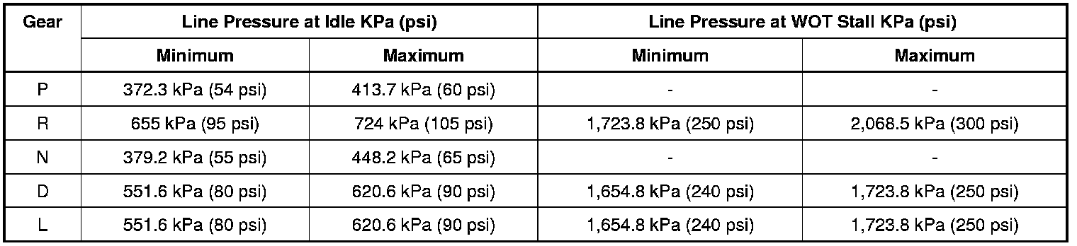 2. Start the engine and check the line pressure. Determine if the line pressure is within specification by using the following chart.