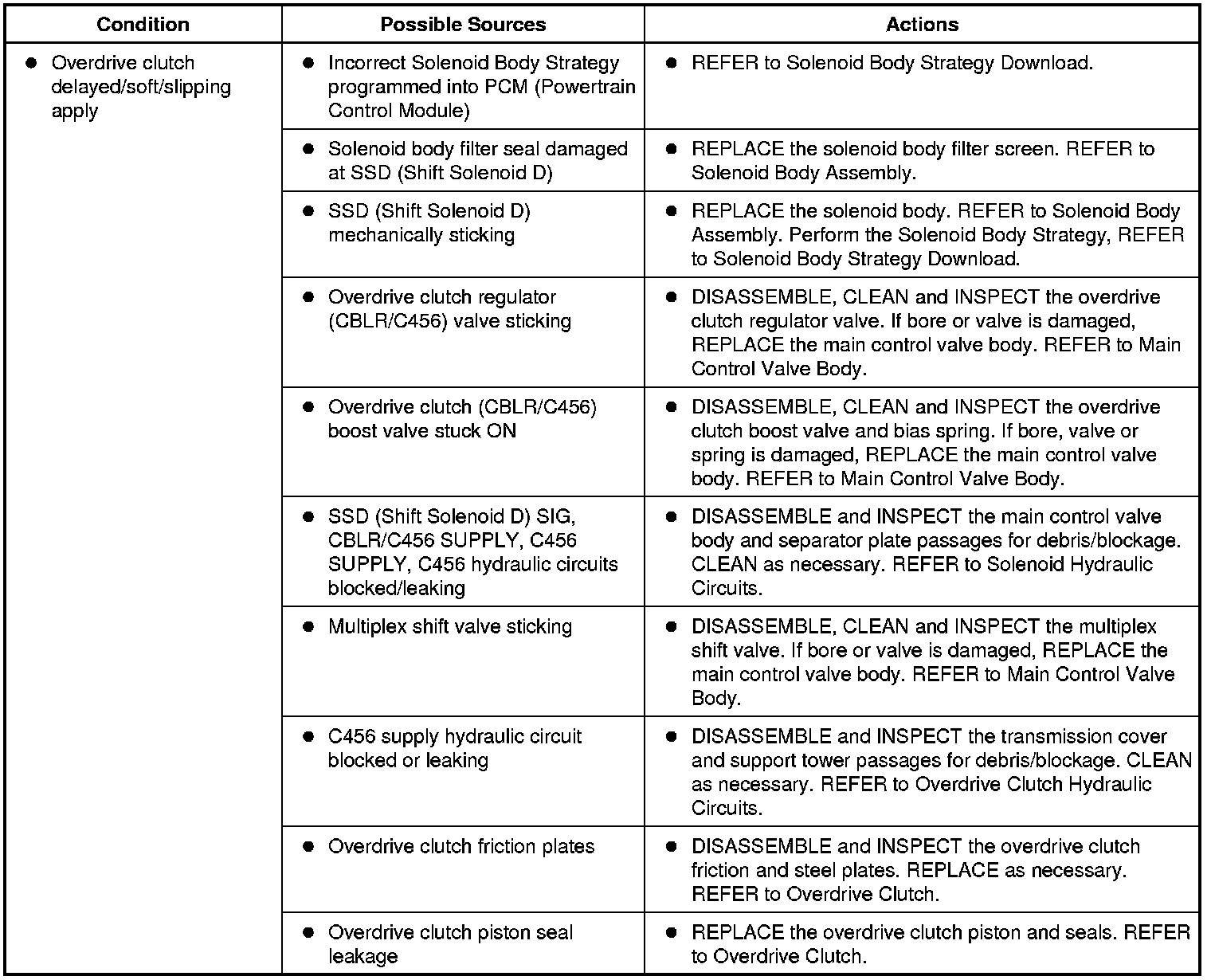 1. For overdrive clutch system operation, REFER to Overdrive Clutch Hydraulic Circuits Hydraulic System - 6F50 and 6F55 or REFER to Overdrive Clutch Mechanical System - 6F50 and 6F55.