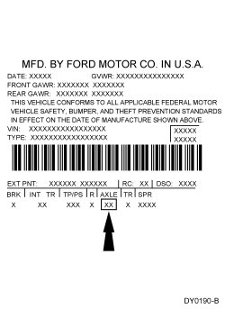 The VC (Vehicle Certification) label is located in the driver door jamb. The axle code is on the VC (Vehicle Certification) label.