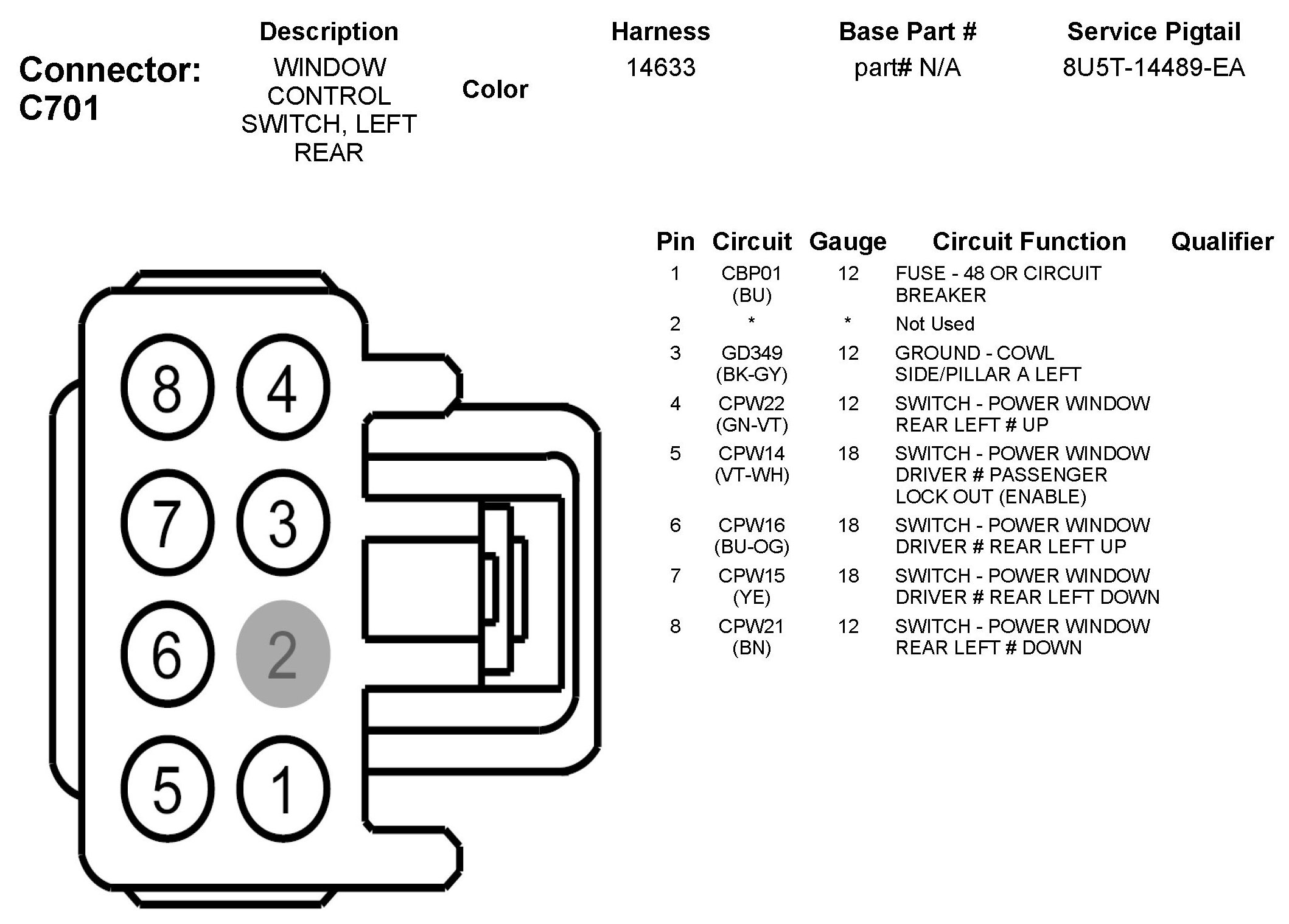 C701 Window Control Switch, Left Rear
