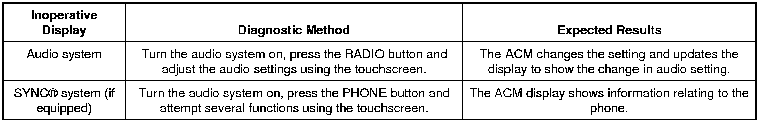 - Observe the inoperative ACM display while carrying out the indicated diagnostic method as follows: