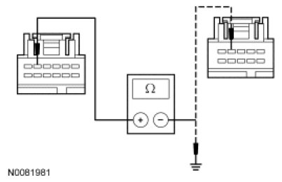 NOTE: Failure to disconnect the battery when instructed results in false resistance readings. Refer to Battery, Mounting and Cables Battery Disconnect.