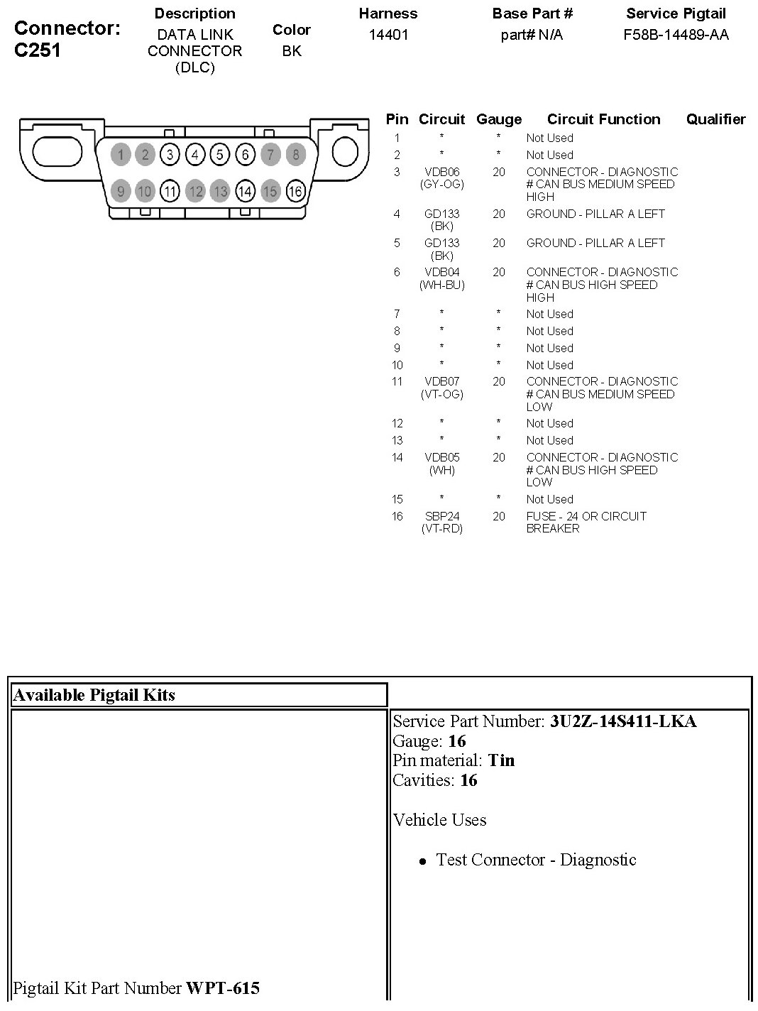 Data Link Connector: Diagrams