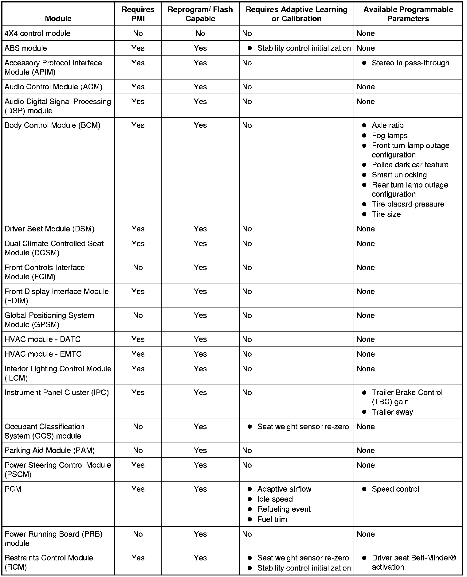 PMI is a scan tool process which configures settings in a new module. Data used for the PMI process is automatically downloaded from the original module and stored when a scan tool session is started. If this data cannot be retrieved from the module being replaced, the scan tool may prompt for As-Built data entry or display a list of parameter values that need to be manually selected. Some modules are reprogrammed during PMI when a strategy/calibration update is available. To carry out PMI, refer to Programmable Module Installation (PMI) Programmable Module Installation (PMI).