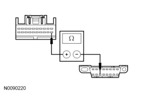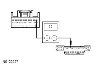 - Measure the resistance between the audio DSP module C3154A-11, circuit VDB07 (VT/OG), harness side and the DLC C251-11, circuit VDB07 (VT/OG), harness side.