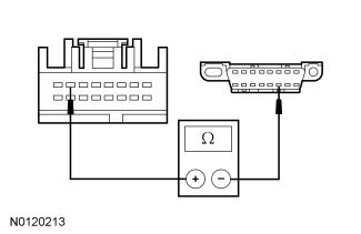 - Measure the resistance between the PAM C2023-7, circuit VDB05 (WH), harness side and the DLC C251-14, circuit VDB05 (WH), harness side.