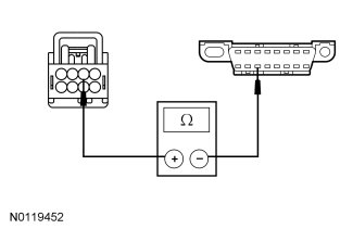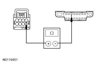 - Measure the resistance between the TPM module C2415-1, circuit VDB06 (GY/OG), harness side and the DLC C251-3, circuit VDB06 (GY/OG), harness side.