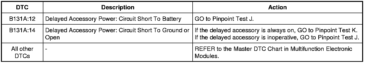 NOTE: This module utilizes a 5-character DTC followed by a 2-character failure type code. The failure type code provides information about specific fault conditions such as opens or shorts to ground. Continuous Memory Diagnostic Trouble Codes (CMDTCs) have an additional 2-character DTC status code suffix to assist in determining DTC history.