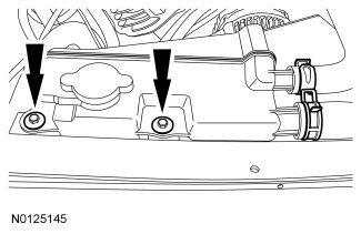 2. Drain the engine coolant and secondary cooling system. For additional information, refer to Engine Cooling - Diesel Engine Cooling System Draining, Filling and Bleeding and Engine Cooling - 6.7L Diesel Powertrain Secondary Cooling Powertrain Secondary Cooling System Draining, Filling and Bleeding.