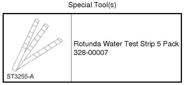 100. Fill the cooling system with low hardness, low chloride water. Tap water which is verified with Rotunda Water Test Strip 5 pack 328-00007 or equivalent is acceptable. Alternatively, use water treated by reverse osmosis, or water that is de-ionized or distilled.