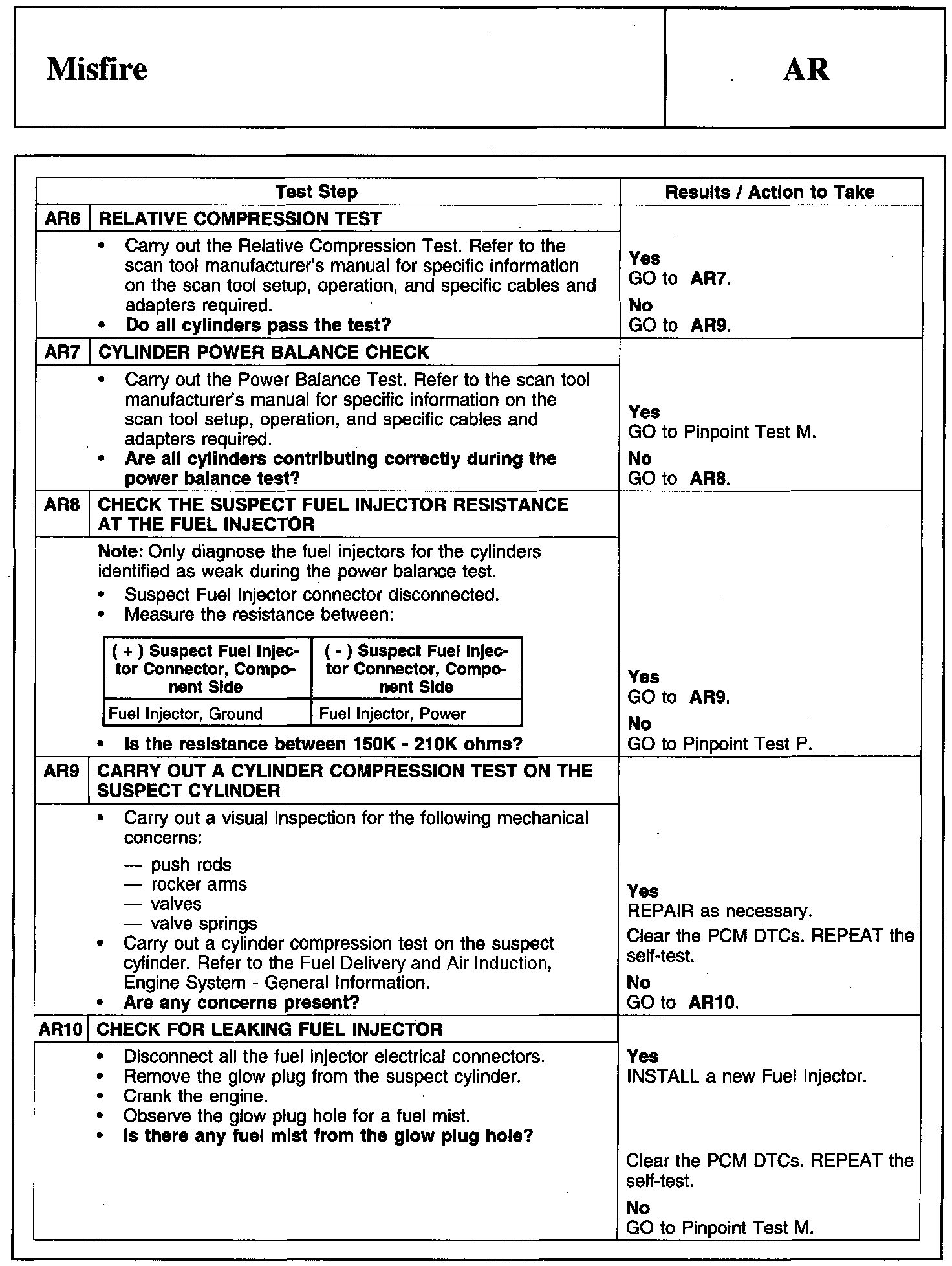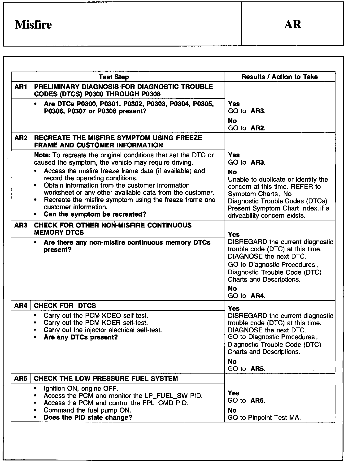 PINPOINT TEST AR: MISFIRE
