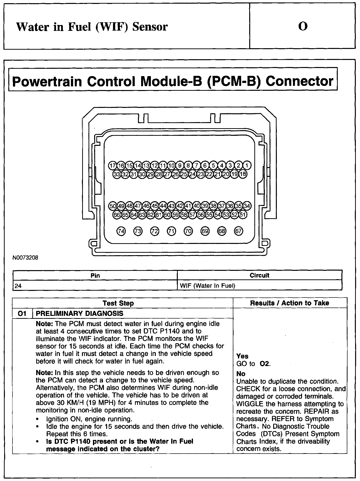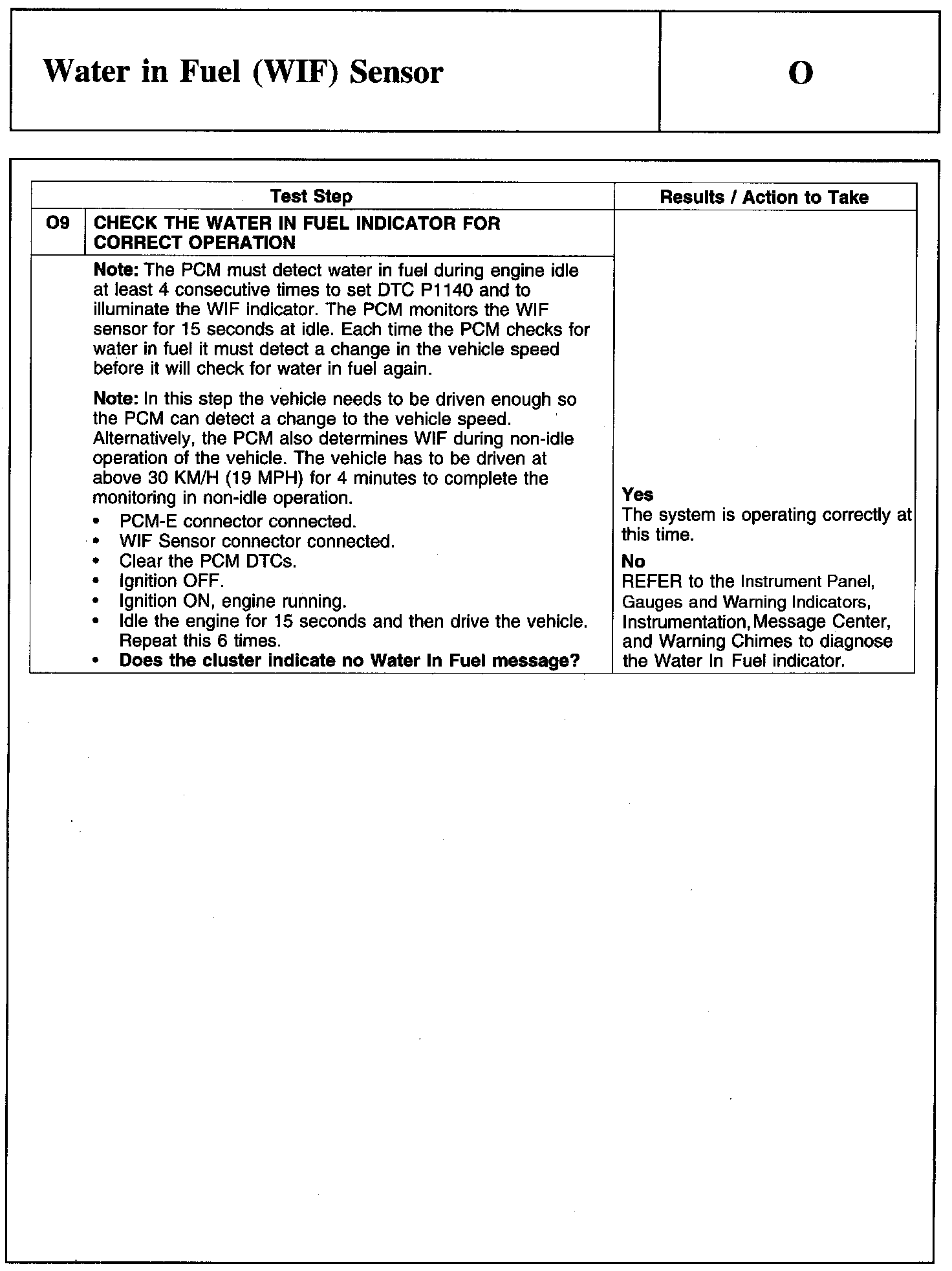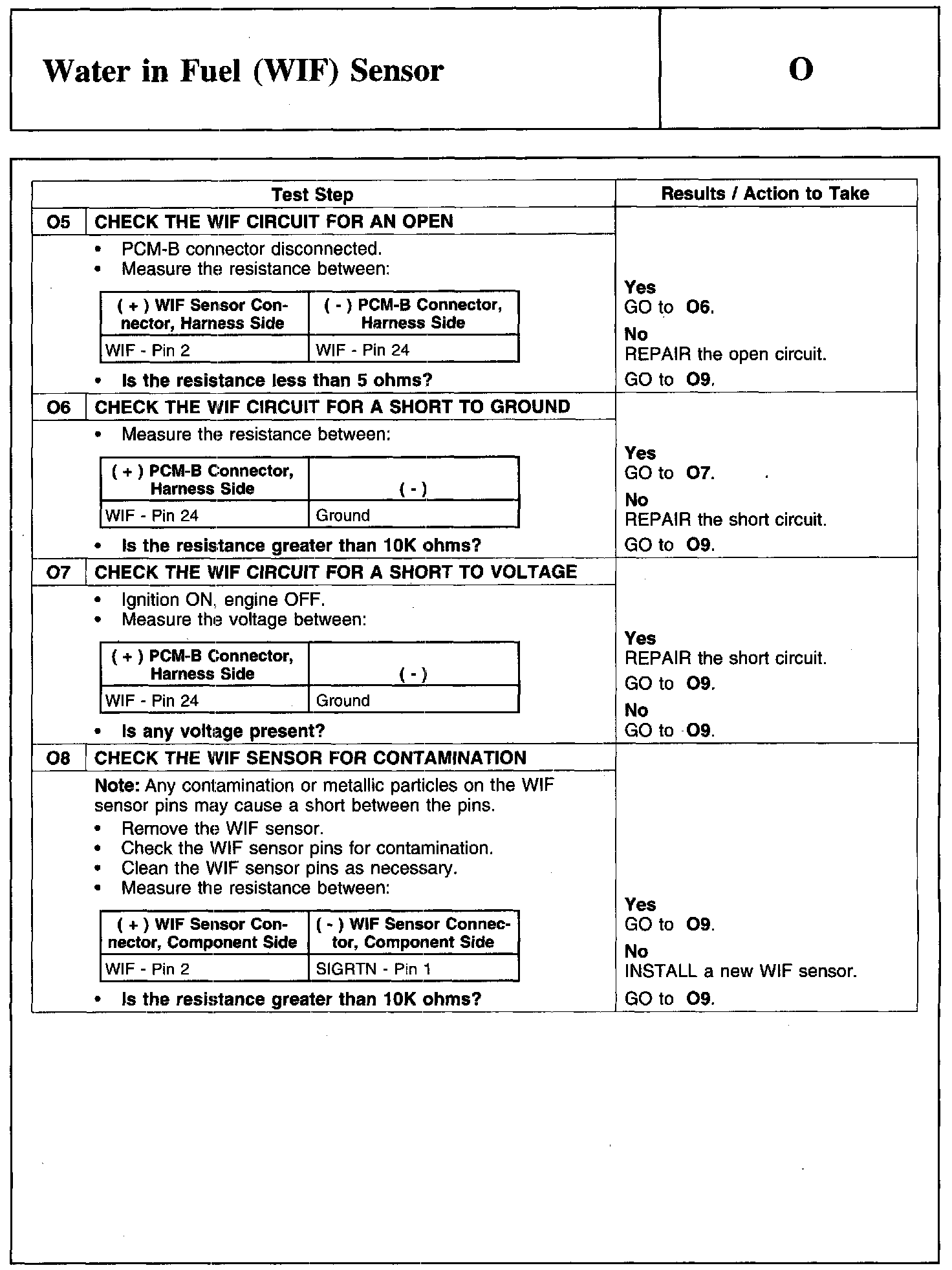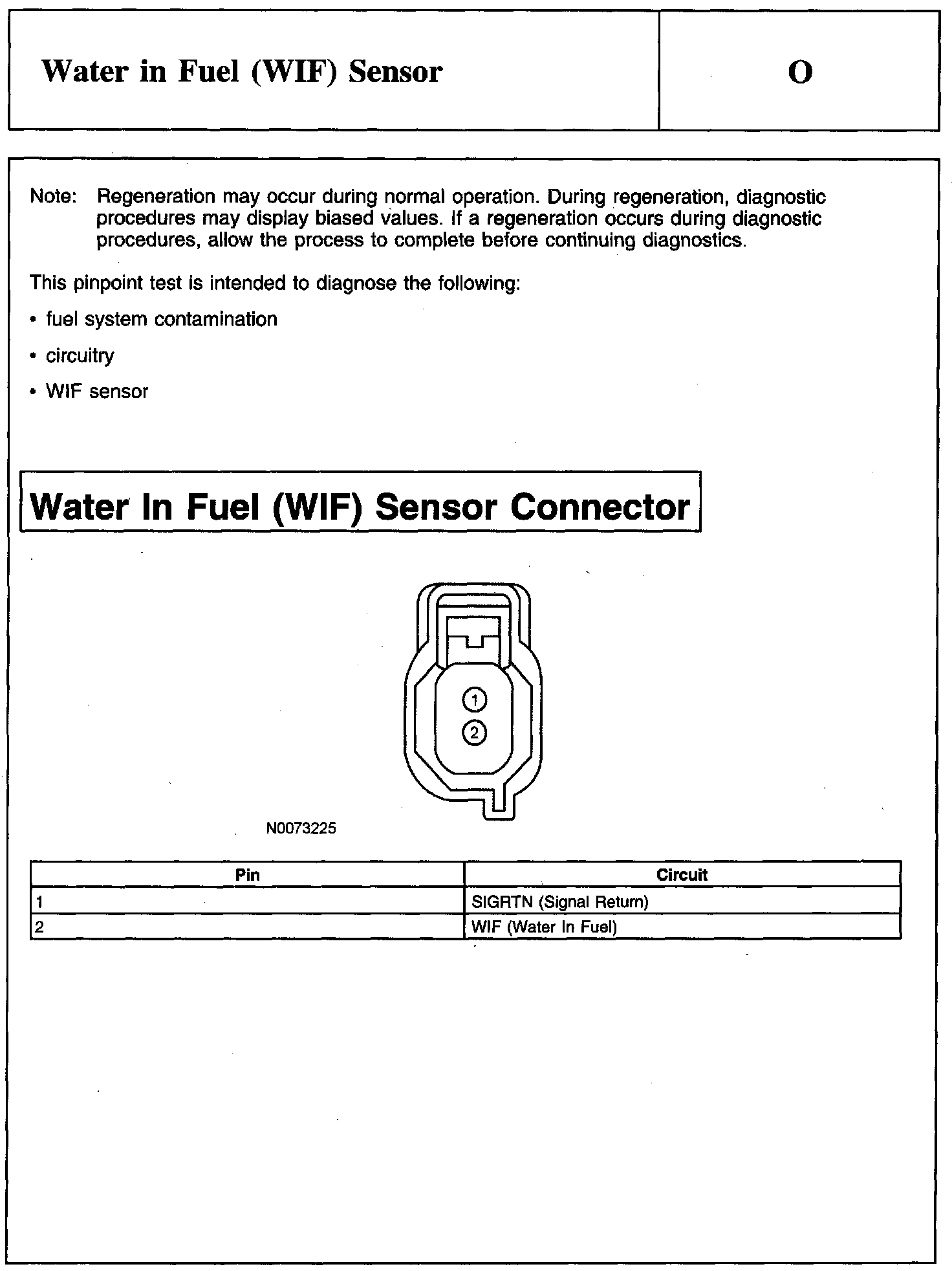 PINPOINT TEST O: WATER IN FUEL (WIF) SENSOR