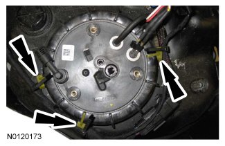 1. NOTE: Install the reductant heater and sender assembly in the same position in the reductant tank as noted during disassembly.