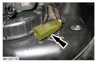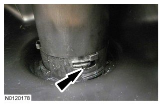 8. NOTICE: Do not pry the top of the reductant heater and sender assembly out of the reductant heater and sender assembly seal. Doing so may cause reductant heater and sender assembly seal damage.