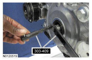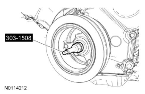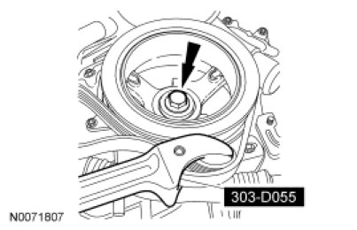 10. Remove and discard the crankshaft pulley bolt.