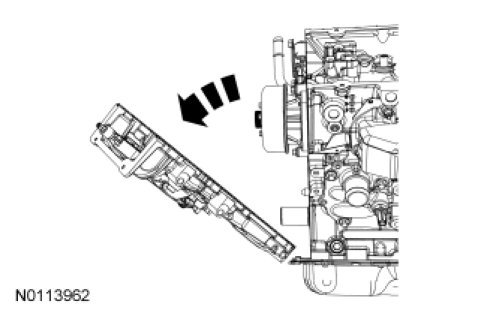 - Remove and discard the engine front cover gaskets.