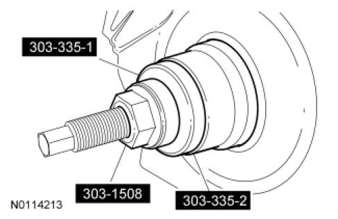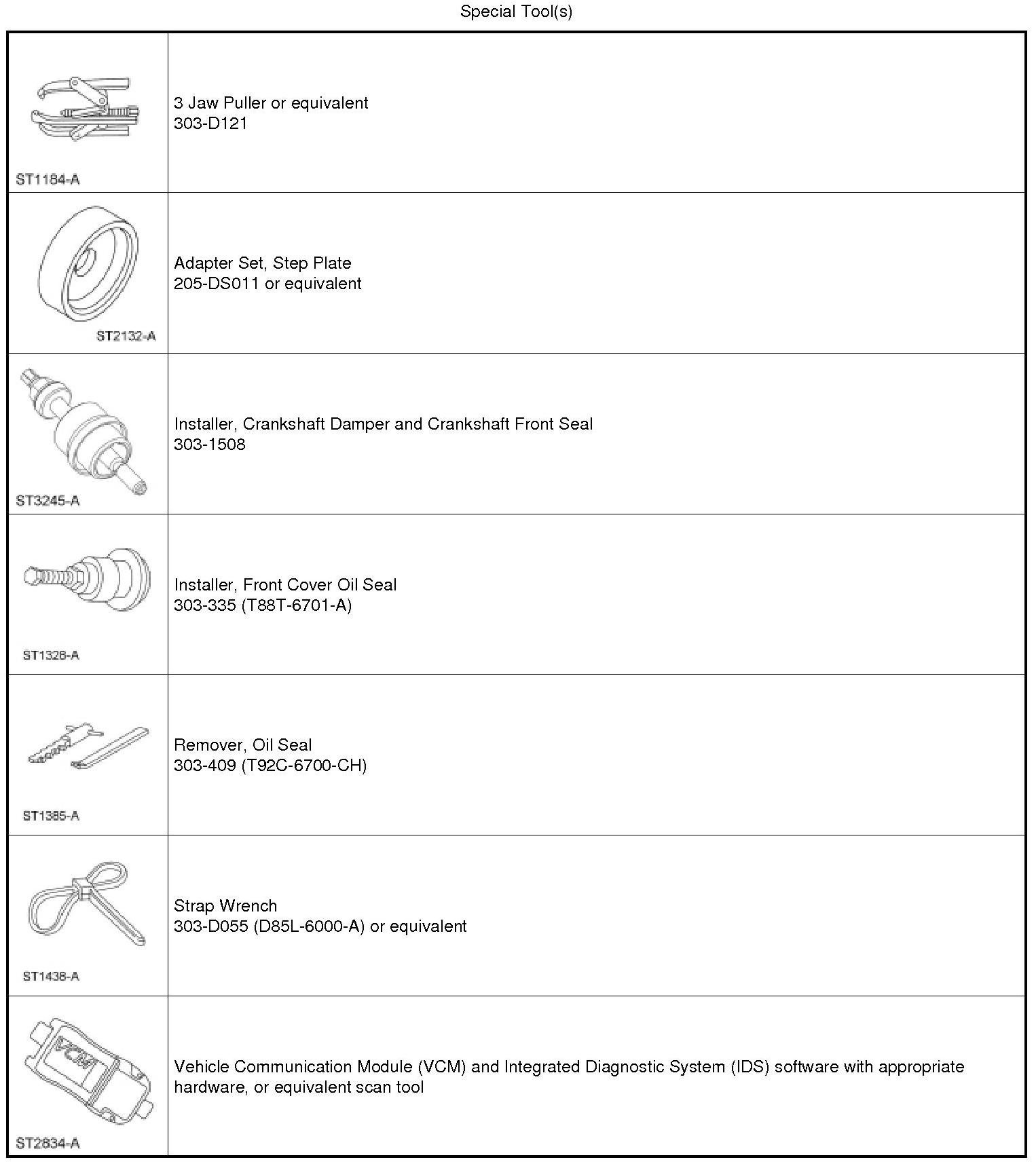 7. Using the Crankshaft Front Oil Seal Installer, the Crankshaft Vibration Damper Installer and the Front Cover Oil Seal Installer, install the new crankshaft front seal into the engine front cover.