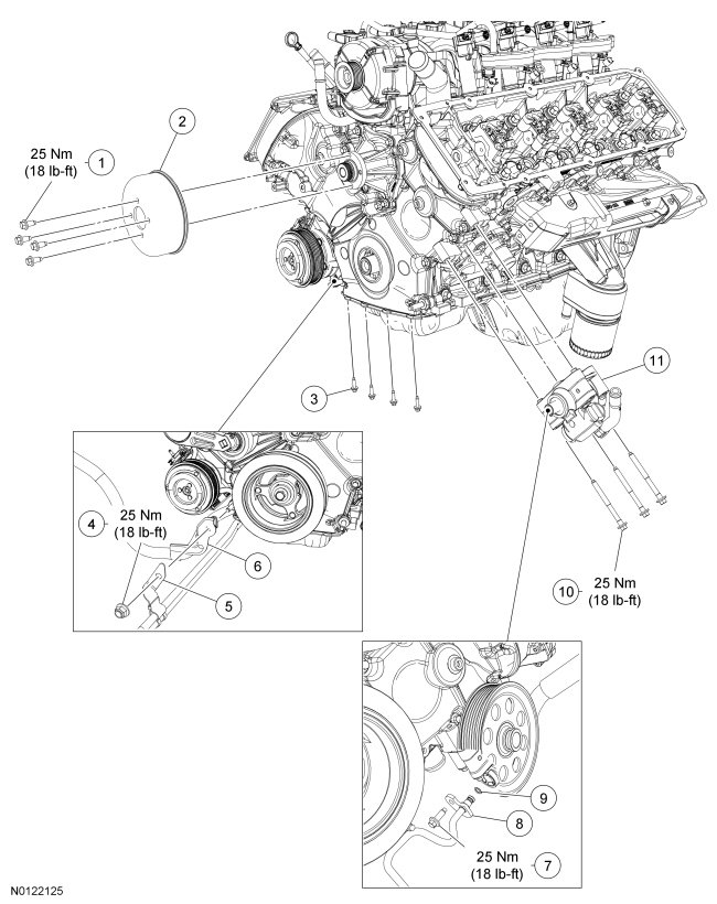 - Tighten to 25 Nm (18 lb-ft).