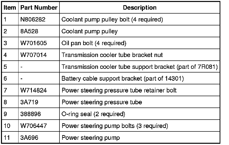 Coolant Pump Pulley, Power Steering Pump and Front Oil Pan Bolts