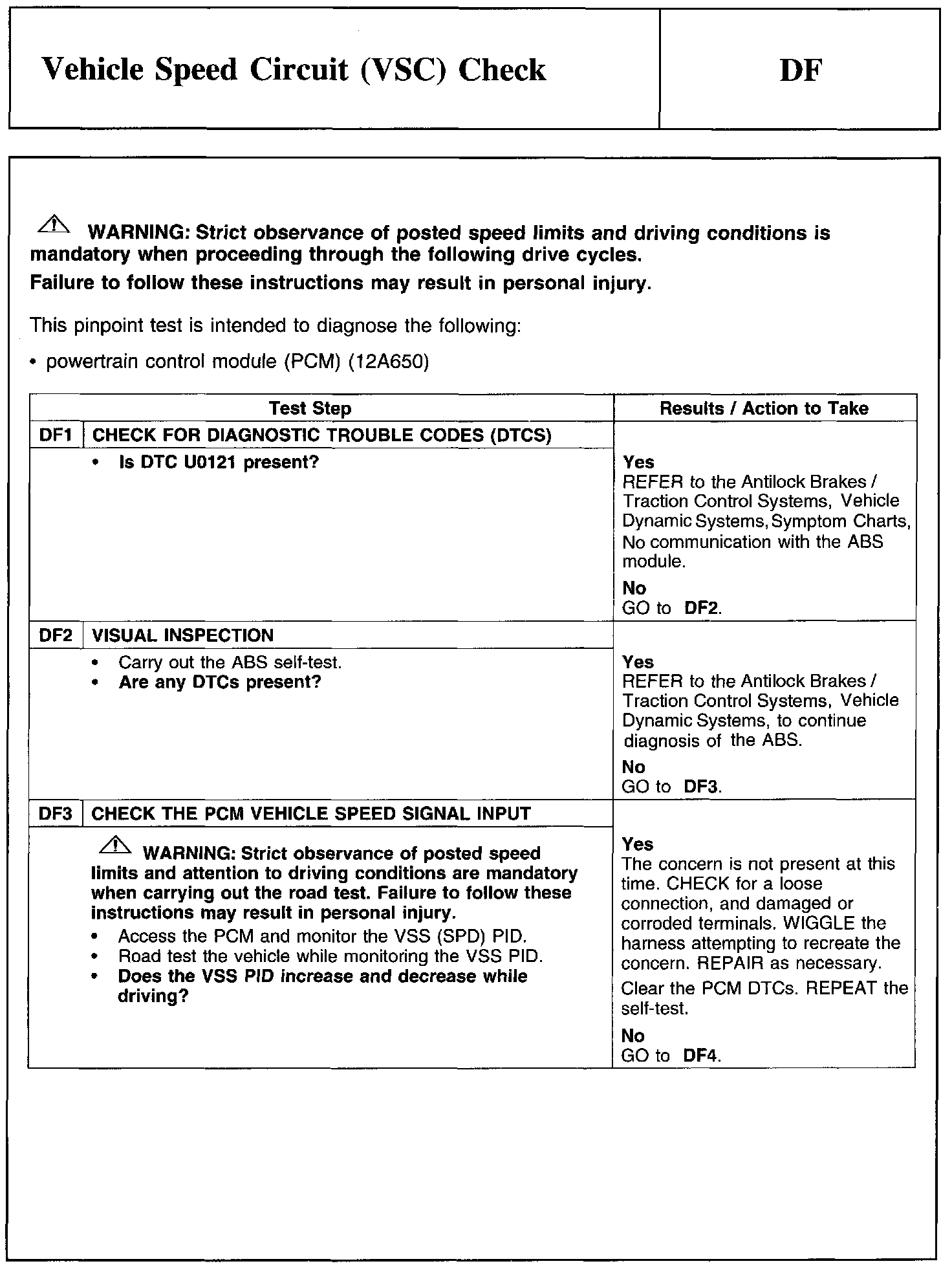 Test DF: Vehicle Speed Circuit (VSC) Check