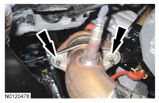 - Tighten the lower LH exhaust Y-pipe-to-exhaust manifold nut to 40 Nm (30 lb-ft).