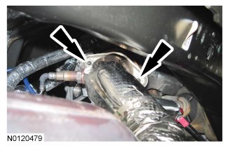 - Tighten the upper RH exhaust Y-pipe-to-exhaust manifold nut to 40 Nm (30 lb-ft).
