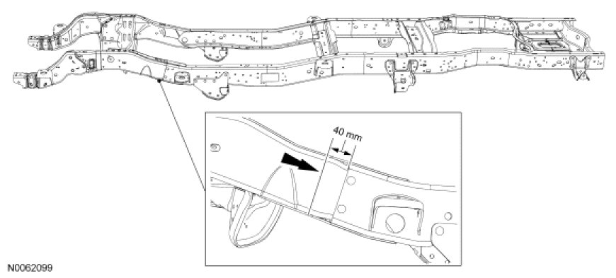 WARNING: Frame rail crush zones absorb crash energy during a collision and must be replaced if damaged. Straighten damaged frame rails to correct frame dimensions prior to frame member sectioning. Failure to follow these instructions may adversely affect frame rail performance and may result in serious personal injury to vehicle occupant(s).
