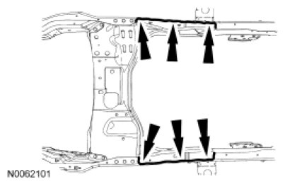 NOTE: Observe prescribed welding procedures when carrying out repairs to the frame assembly. For additional information, refer to Welding Precautions - Steel .