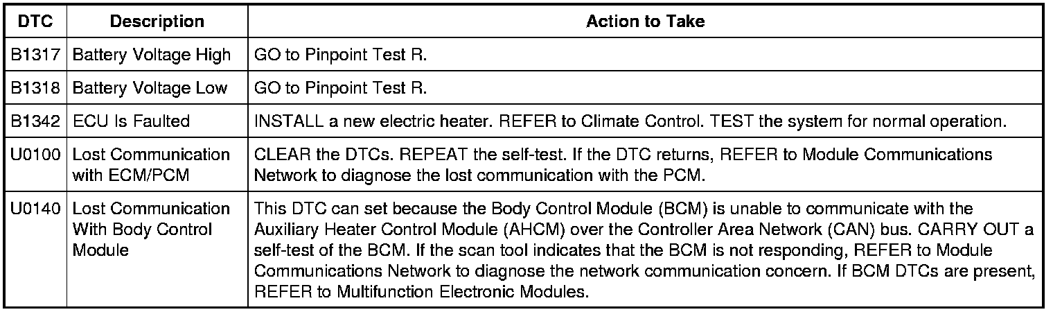 Auxiliary Heater Control Module (AHCM) DTC Chart