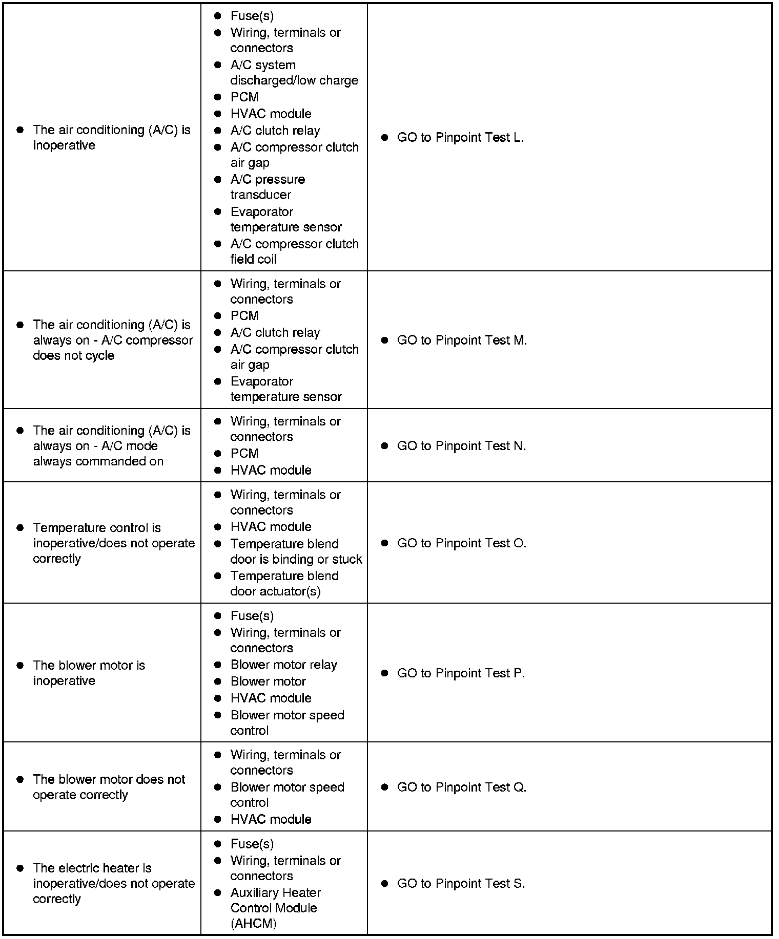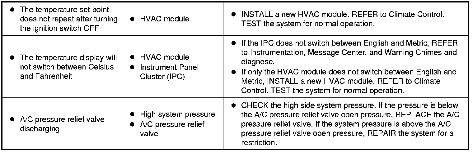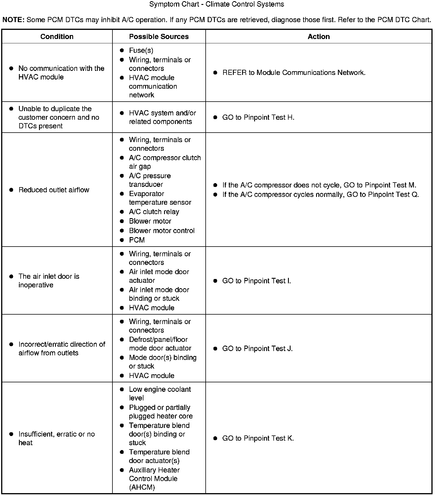 Symptom Chart - Climate Control Systems