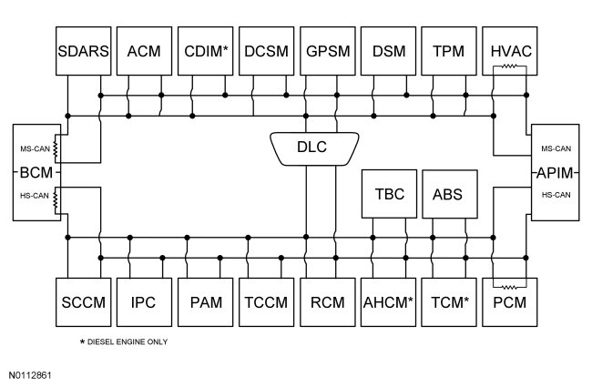 The Body Control Module (BCM) is the gateway module, translating messages on the HS-CAN to MS-CAN and vice versa. This allows a message to be distributed throughout both networks.