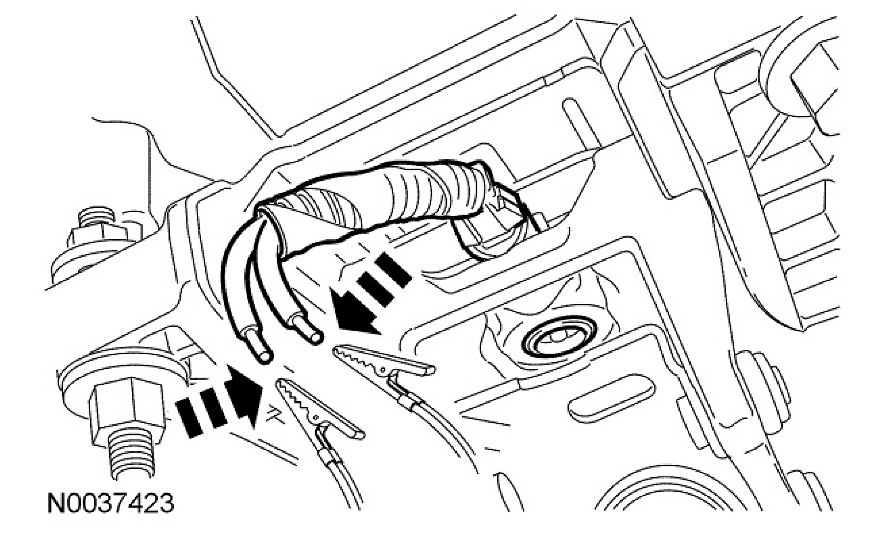 9. Deploy the deployable steering column by touching the ends of the 2 wires of the jumper harness to the terminals of a 12-volt battery.