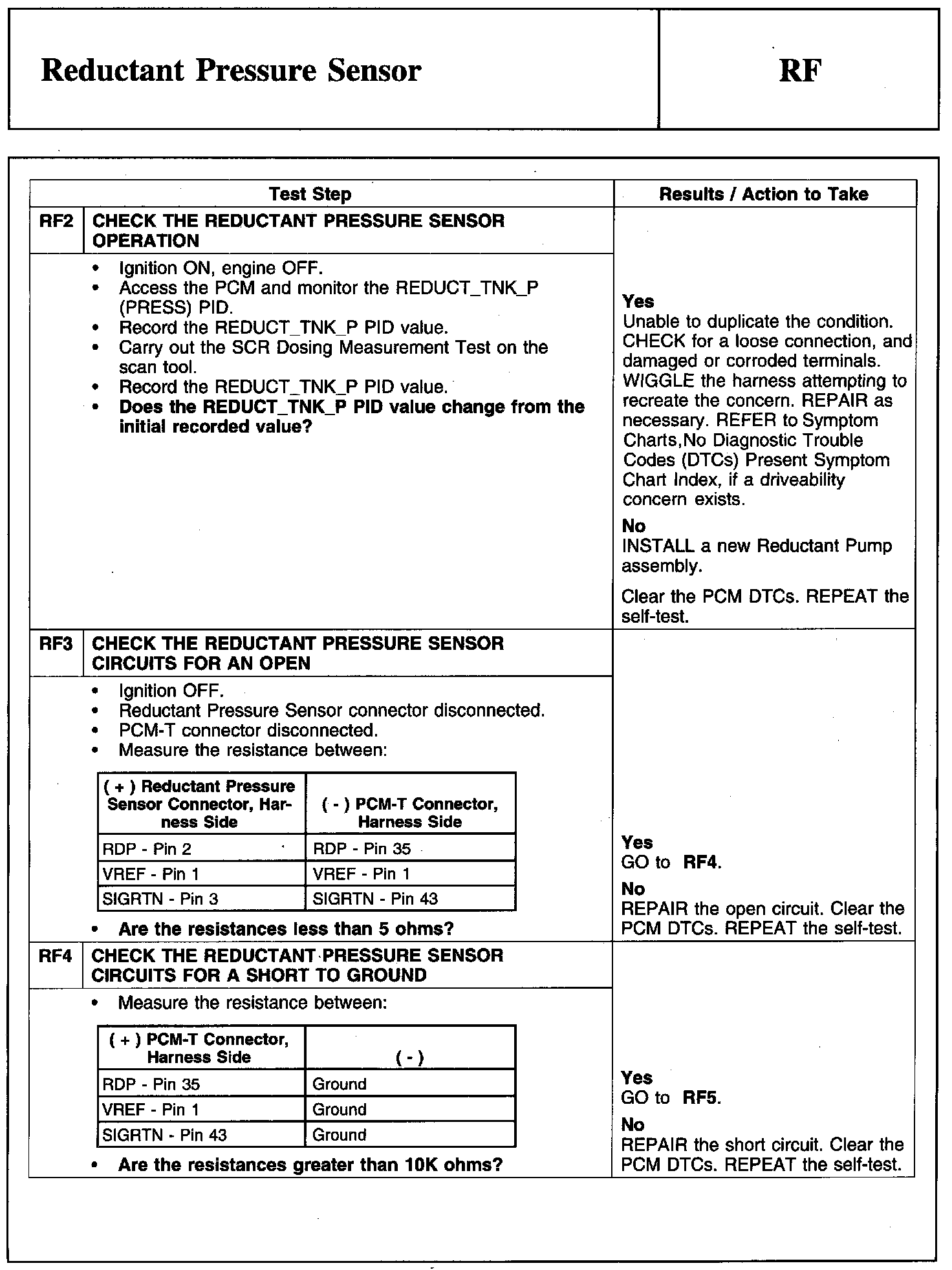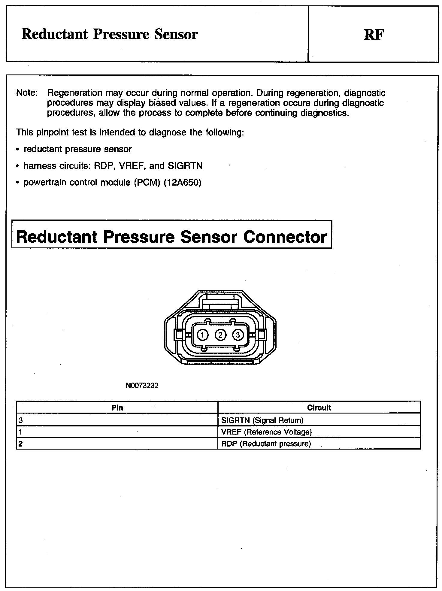 PINPOINT TEST RF: REDUCTANT PRESSURE SENSOR
