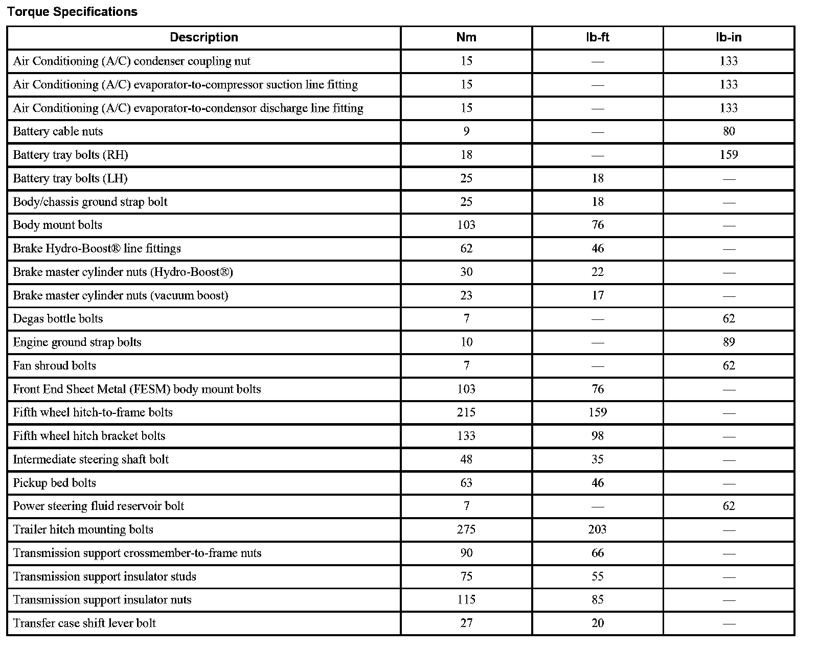 Torque Specifications
