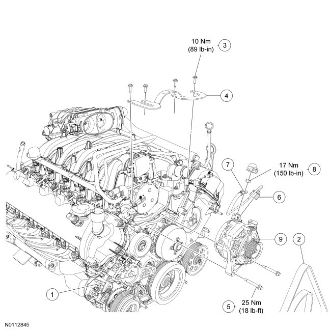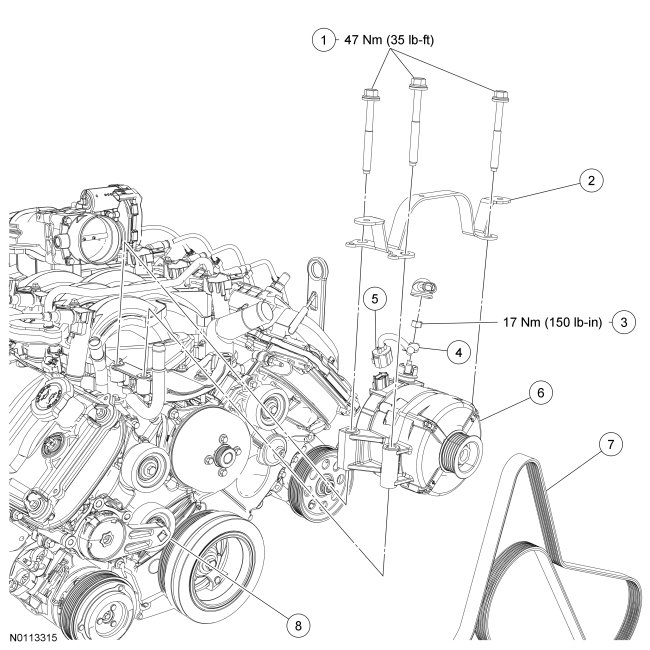 4. Release the accessory drive belt tension and remove the drive belt from the generator pulley.