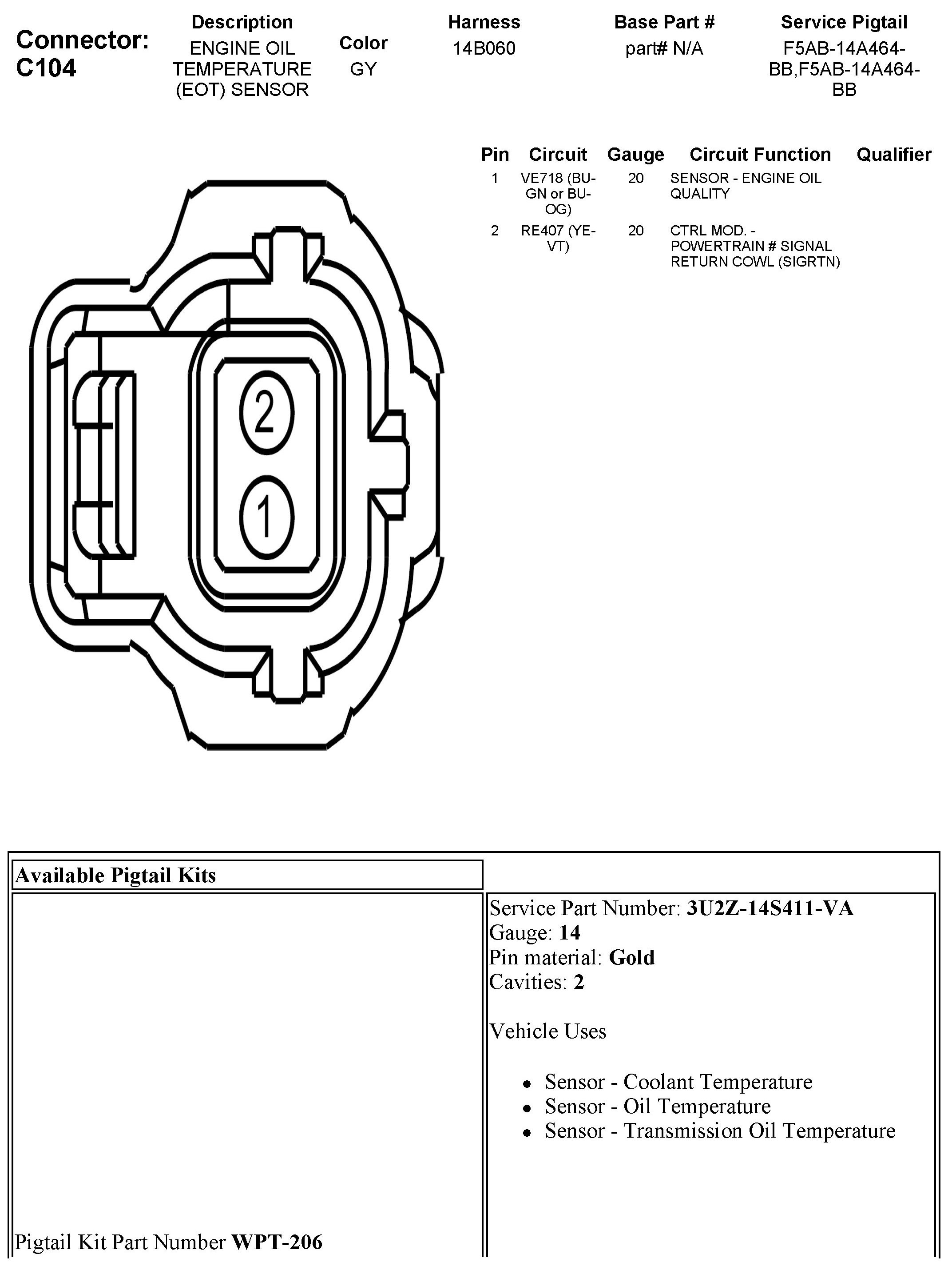 Oil Temperature Sensor For ECM: Diagrams
