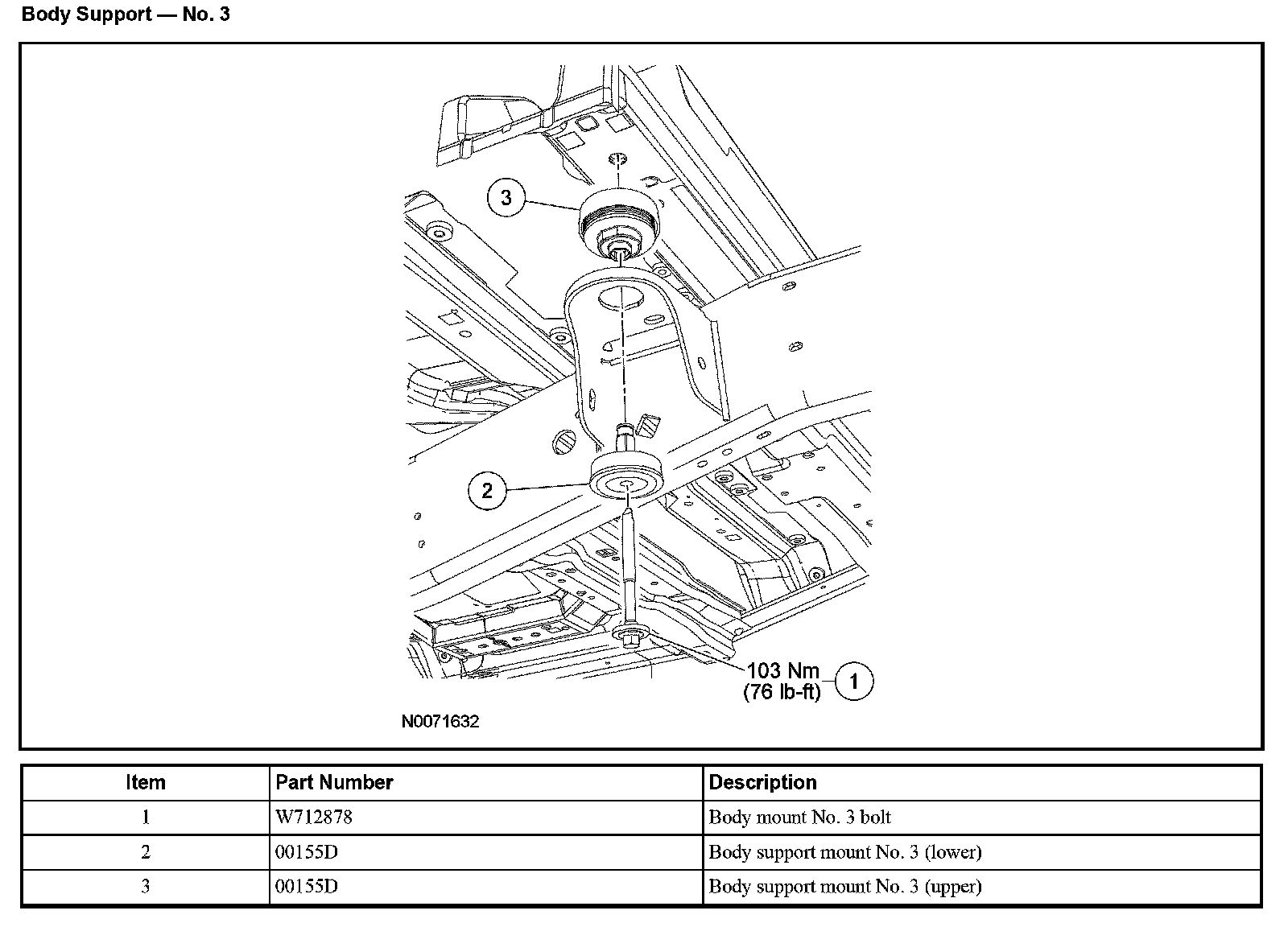 - cannot reuse body support mounting fasteners. Install new fasteners for each fastener that has been removed or loosened.
