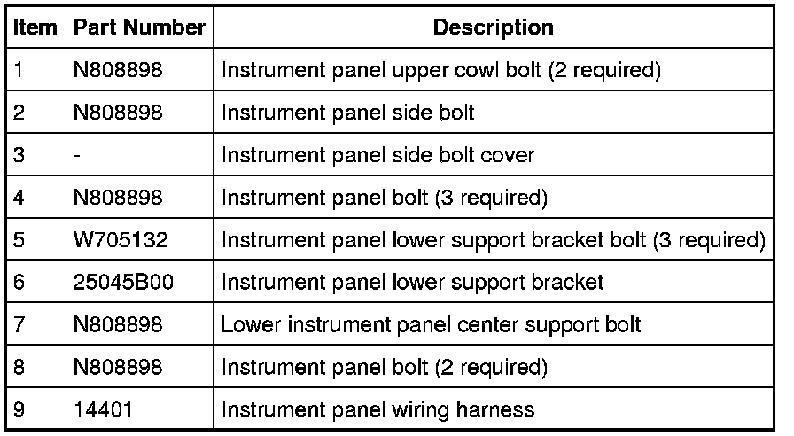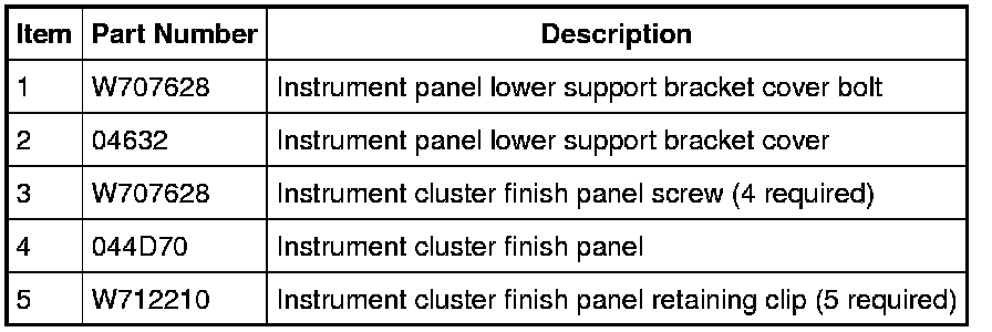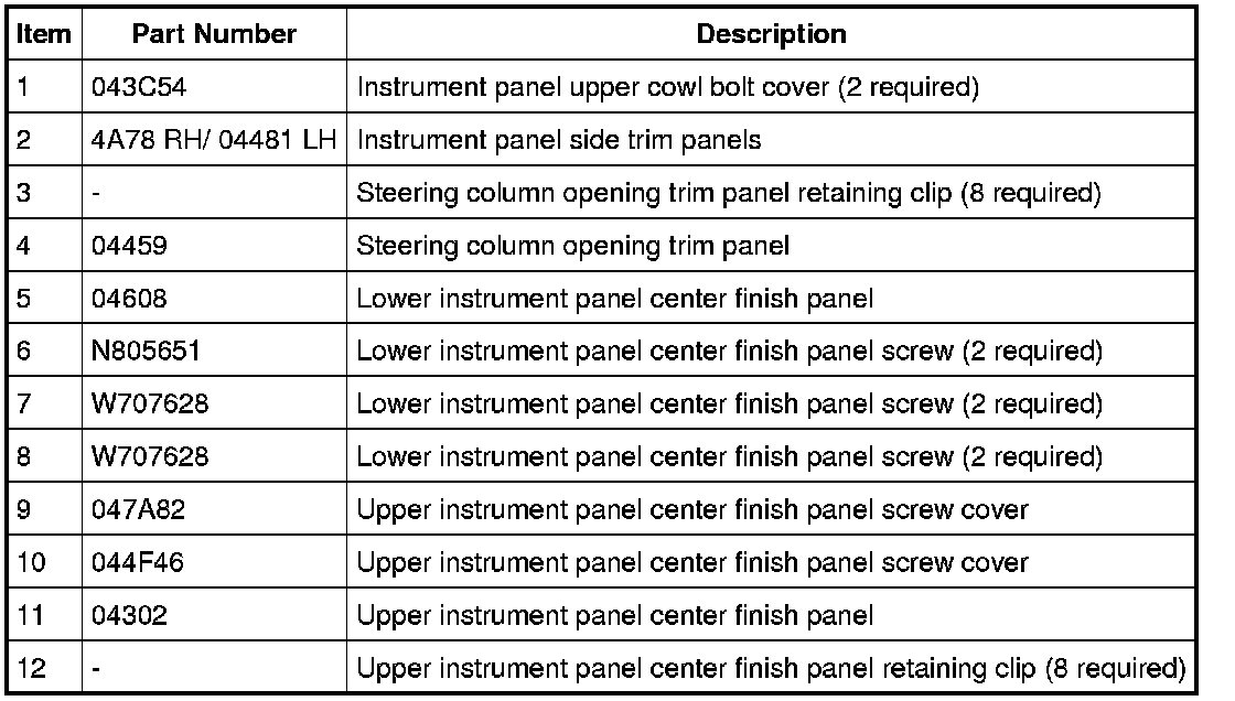 Instrument Panel and Instrument Cluster Finish Panels and Fasteners