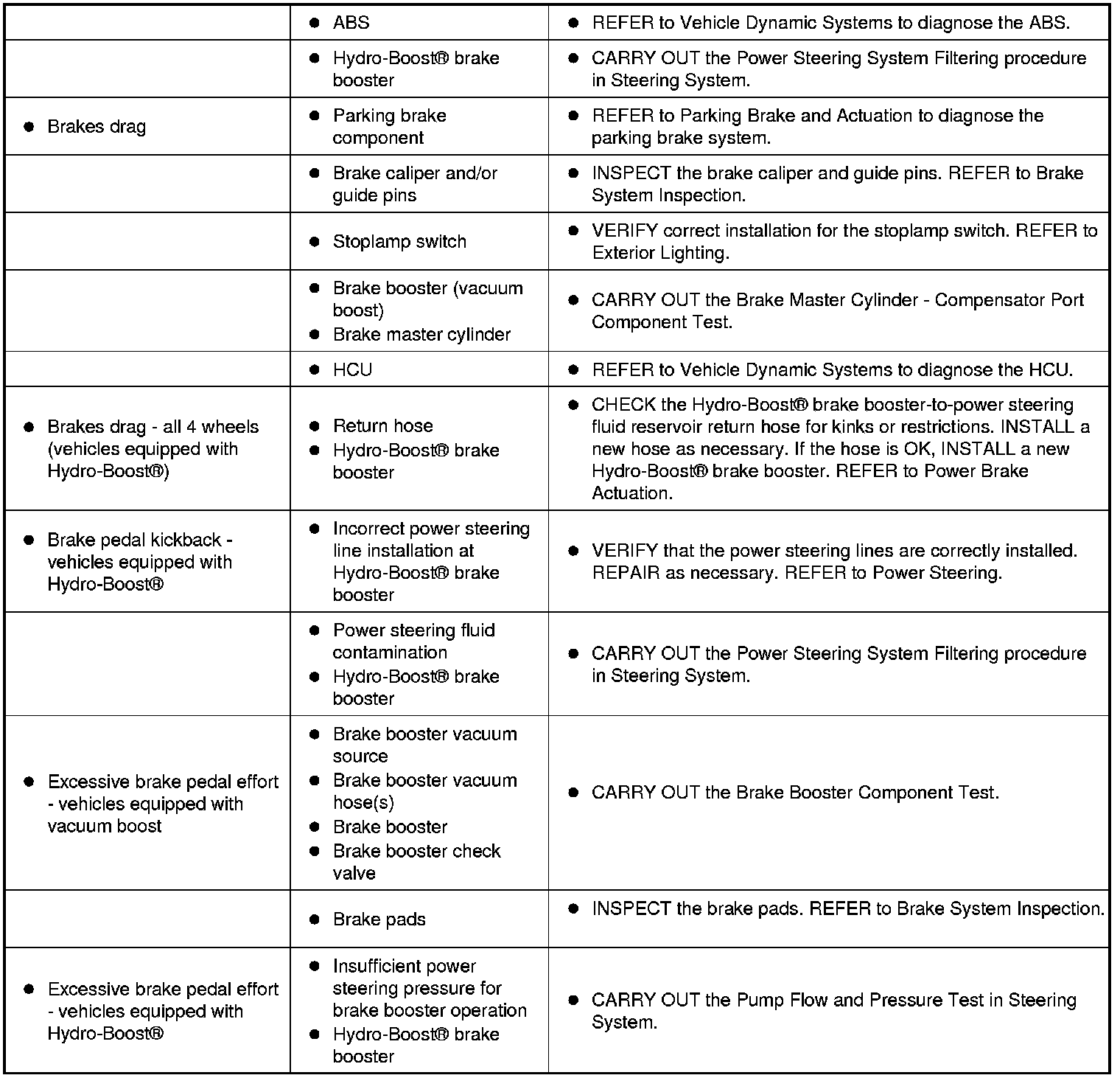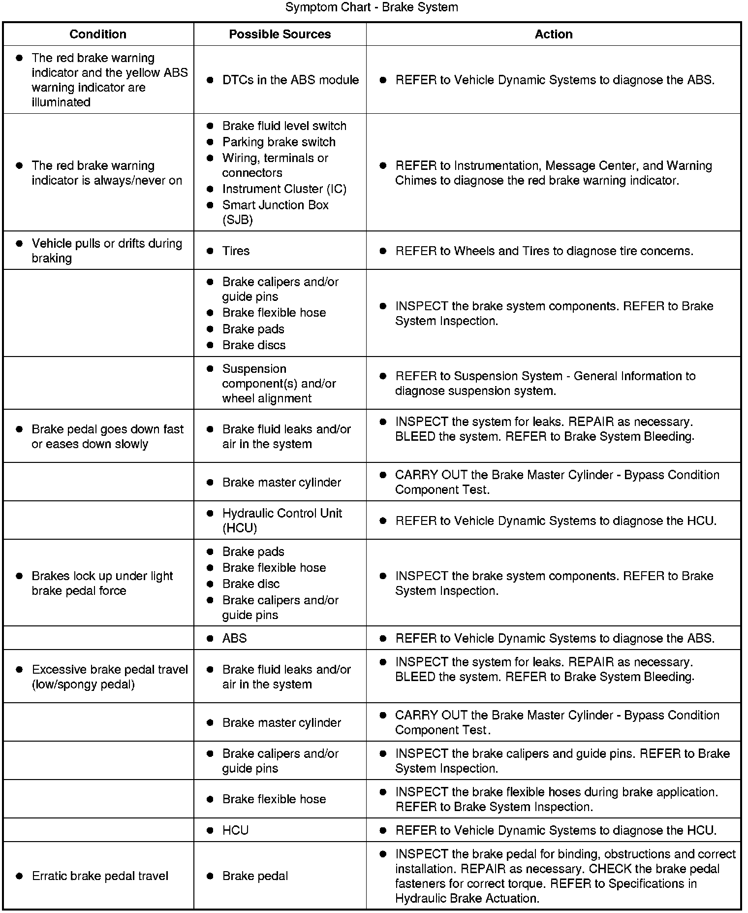 Symptom Chart - Brake System