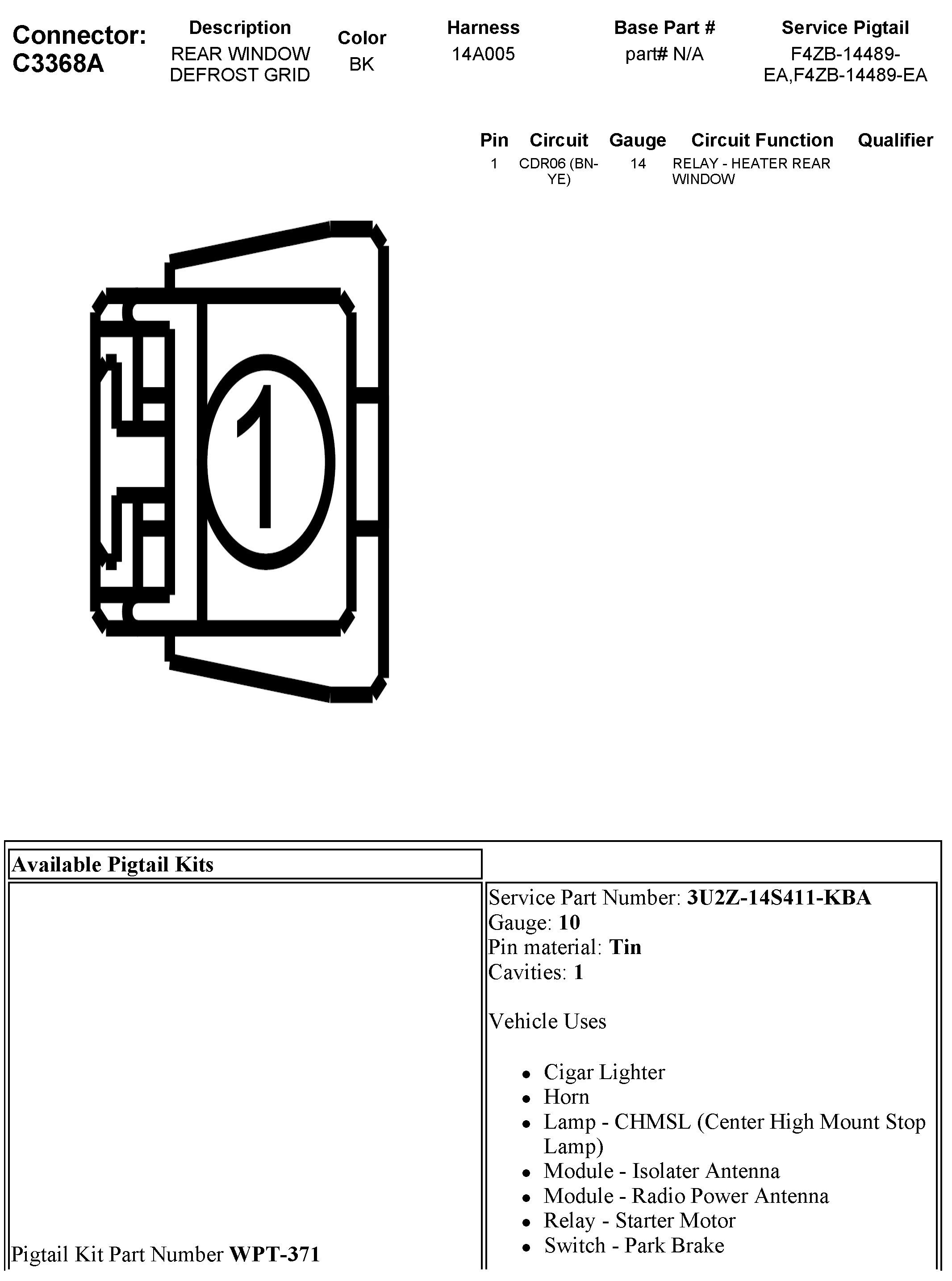 C3368A Rear Window Defrost Grid