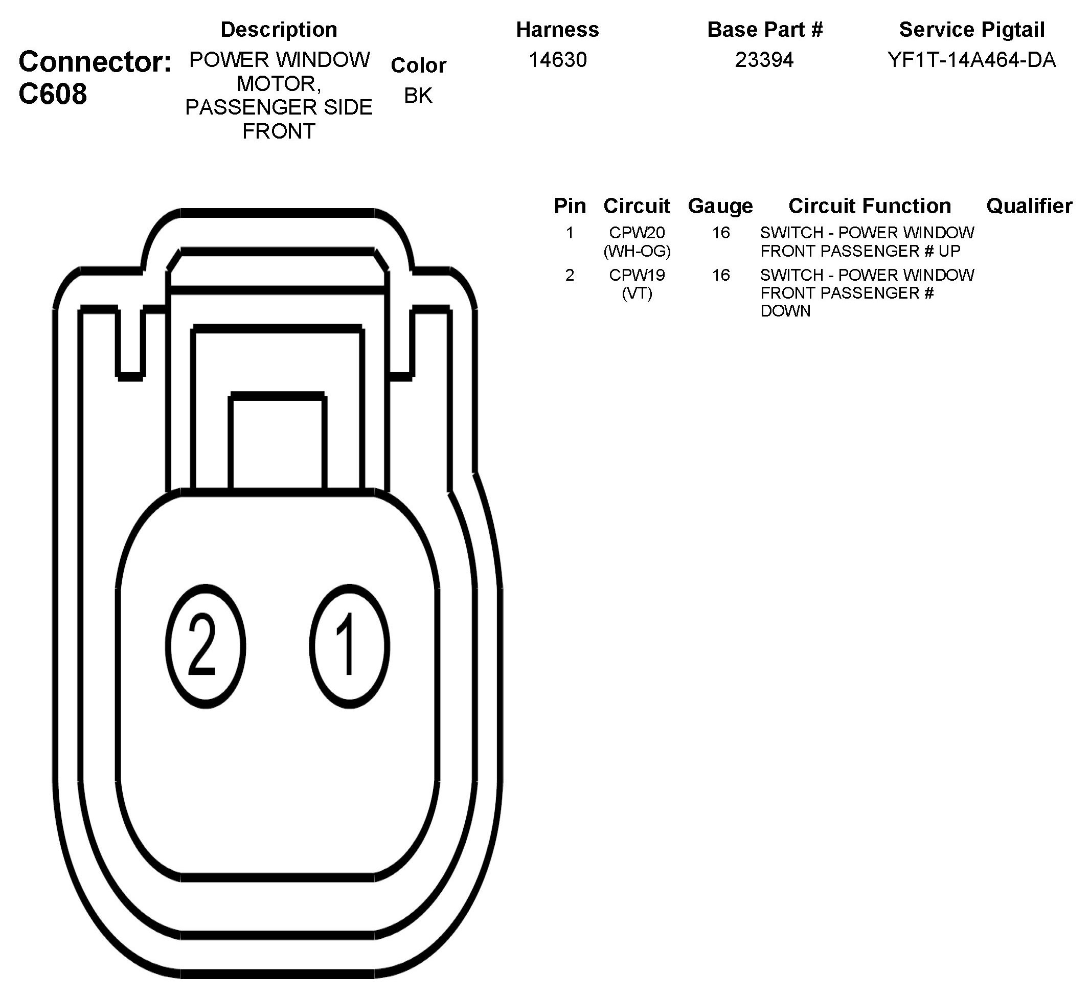 C608 Power Window Motor, Passenger Side Front