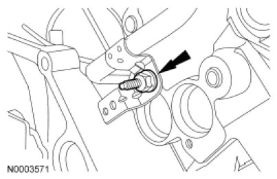 NOTE: The engine support insulator bracket bolts must not be tightened more than 90 degrees after initial torque. Place a visible mark on the engine mount bracket and bracket bolts after the bolts are tightened to 30 Nm (22 lb-ft). Turning the bolt 1 flat of the bolt head is equal to 60 degrees.