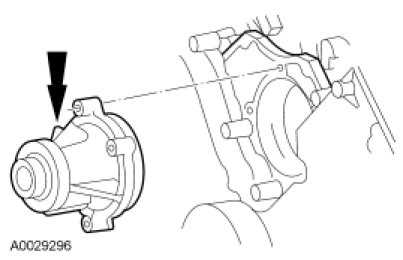 75. NOTICE: Do not rotate the coolant pump housing once the coolant pump has been positioned in the cylinder block. Damage to the O-ring seal will occur.