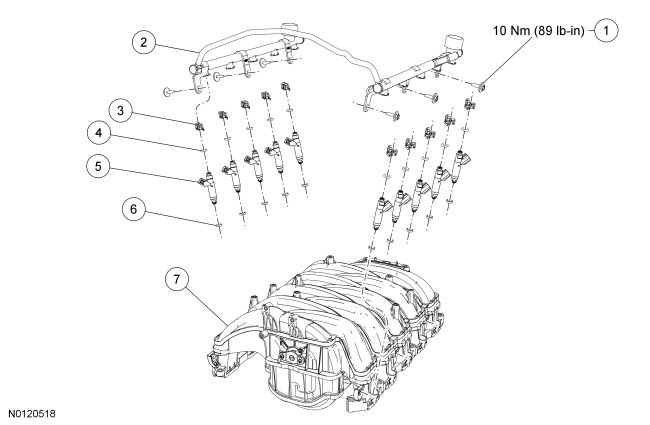 4. Install the 6 fuel rail bolts.